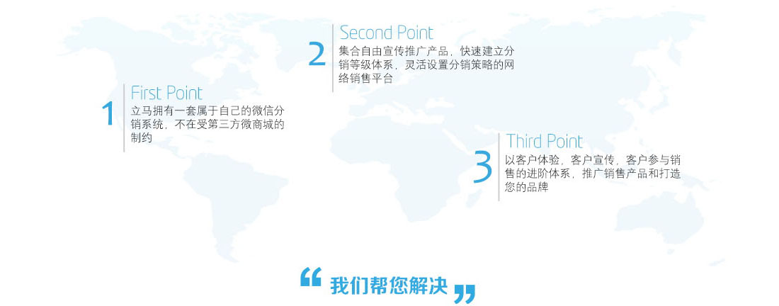 幫您快(kuài)速打開(kāi)微(wēi)信分φ∏α×(fēn)銷,建立獨立的(de)微(wēi)分(fēn)銷平台,↕σ免除微(wēi)信第三方分(fēn)銷的(de)後顧之憂!